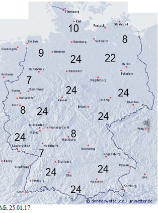 Benetzungsdauer am Mittwoch, den 25.01.2017
