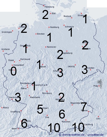 Während es im Norden und Westen abgesehen einzelner Schauer trocken bleibt und daher eine niedrige Benetzung herrscht, kann im Süden die Benetzungszeit in Folge von Regengüssen 5 bis 10 Stunden erreichen. Sonst entsteht leichte Benetzung nur durch nächtlichen Strahlungstau.