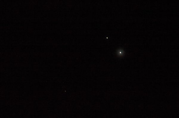 Am östlichen Himmel stehen jetzt drei Planeten sich Nahe. Venus (am hellsten), Jupiter und Mars. Die Aufnahme entstand in Bonn um 05.10 Uhr am 26.10.2015.
