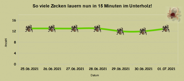 Auch am Wochenende und in der neuen Woche bleibt das Zeckenrisiko hoch - mit etwa 13 Zecken muss in 15 Minuten gerechnet werden.