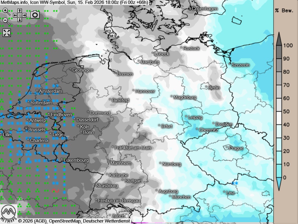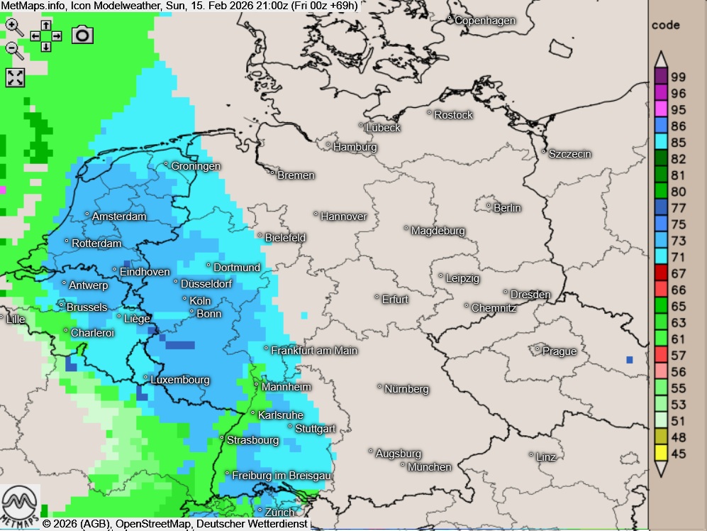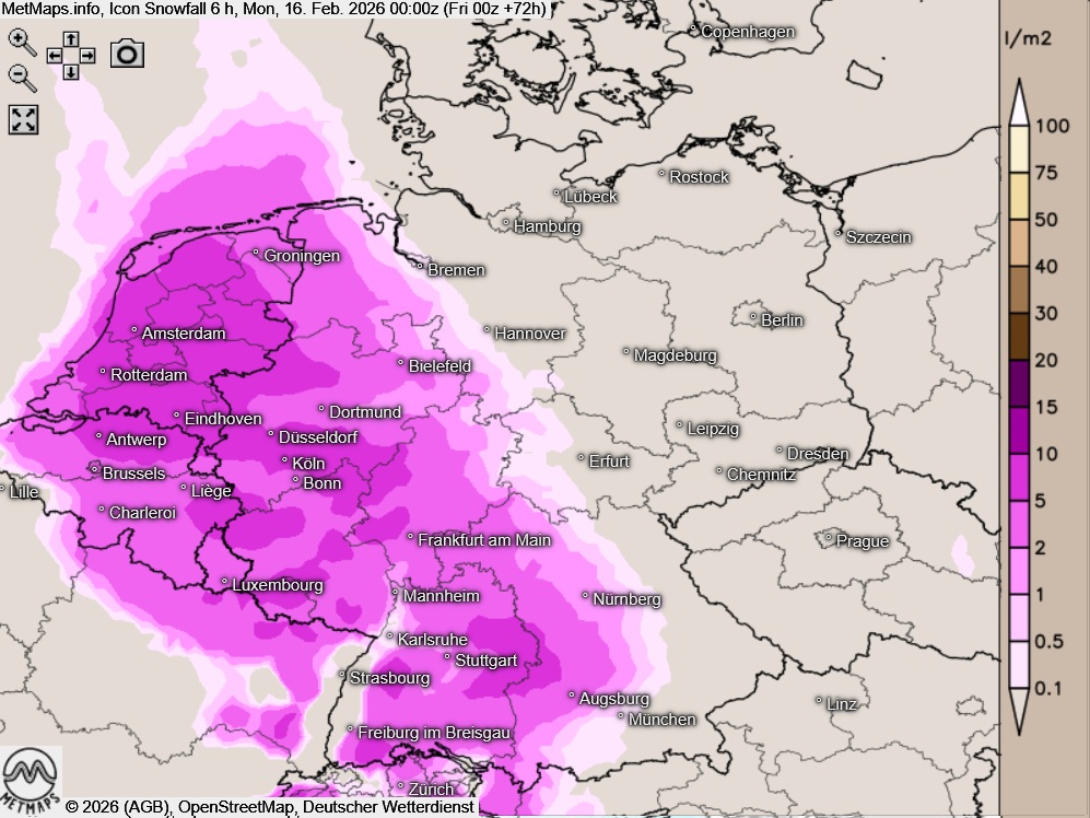Neuer Schnee von Westen, Werte am Nachmittag um -2 bis 5 Grad.