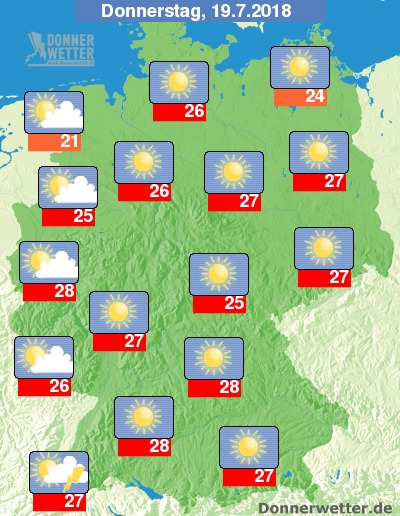 Ein weiterer sehr freundlicher Julitag ist am Donnerstag zu erwarten - in den meisten Landesteilen gibt es heute ungestörten Sonnenschein, entlang des Rheins können auch mal lockere Wolken durchziehen. Im äußersten Südwesten sind im Tagesverlauf vereinzelte Gewitter möglich, sonst bleibt es trocken.