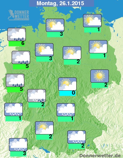 Der Start in die neue Woche fängt in der Osthälfte des Landes voraussichtlich noch weitgehend trocken und gebietsweise auch recht freundlich an. Nach Westen hin ziehen jedoch schon von Anfang an dichte Wolken durch und es fällt immer wieder Schnee, Schneeregen oder Regen. Im Tagesverlauf ziehen die dichten Niederschlagswolken auch über die Osthälfte des Landes hinweg, gleichzeitig lockert die Bewölkung von Nordwesten wieder auf und nachfolgend bleibt es hier weitgehend trocken. Die Temperatur steigt auf 0 bis 6 Grad.