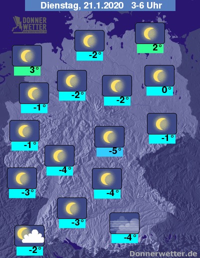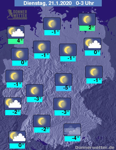 Nur an den Küsten in der Nacht Tiefstwerte im Plusbereich.