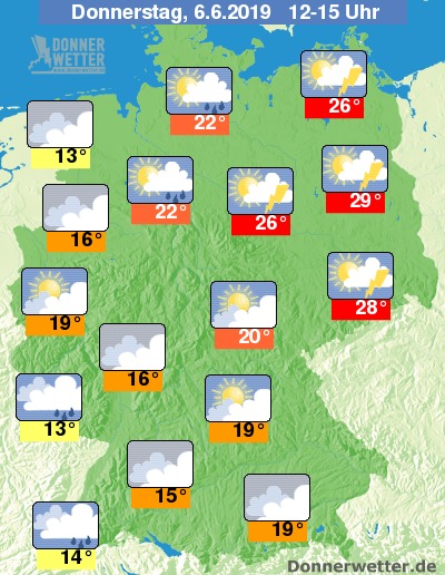 Die Temperaturen erreichen im Nordosten noch sommerliche und schweißtreibende 24 bis 30 Grad, im übrigen Land wird es mit 15 bis 23 Grad wesentlich kühler als am Vortag. Im Südwesten, sowie an der Emsmündung wird die 15 Grad - Marke meistens unterboten.