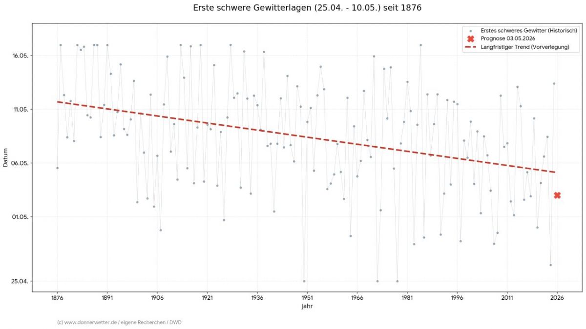 Die statistischen Daten der letzten 150 Jahre unterstreichen diesen Trend. Während Gewitter früher klassische Boten des Hochsommers waren, finden sie heute in einer wärmeren Welt immer früher den Weg in den Kalender. Wo man früher lediglich mit einem Regenschauer zum Maiausflug rechnen musste, gehört die Warnung vor Blitzschlag und Sturmböen heute bereits zum festen Repertoire des Frühlingsbeginns.