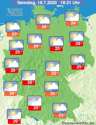 Heute Nachmittag können sich im Nordwesten und Südosten des Landes, sowie über Sachsen unter teils dichten Wolken Schauer bilden. Im übrigen Land ist es oft heiter bis sonnig, teils auch mal wolkiger, aber weitgehend trocken. Die Temperatur liegt bei 21 Grad an der Nordsee und bis 27 Grad im Rheinland.