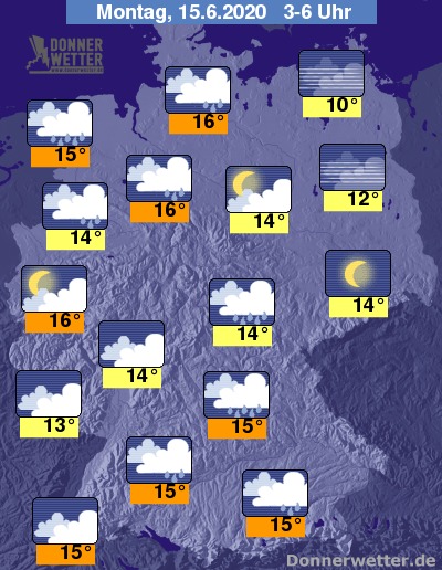 In der bevorstehenden Nacht fällt in einem breiten Streifen von Nordwesten bis zum Südosten Deutschlands sowie im gesamten Süden unter dichten Wolken zeitweise Regen. Dagegen ist es vom Osten bis zum Nordosten Deutschlands meist sternenklar und dazu trocken. Im Westen ist es meist stark, teils aufgelockert bewölkt und dazu meist trocken. Die Temperatur sinkt auf 16 Grad in Hannover und bis 10 Grad in Stralsund.