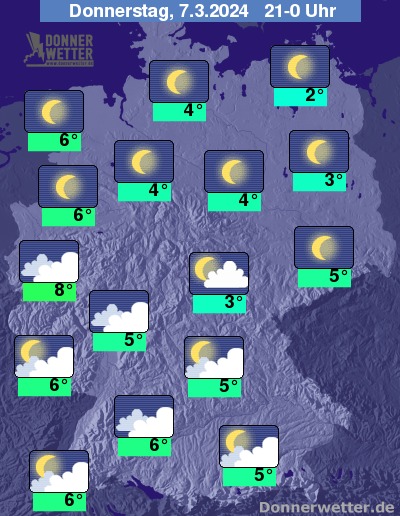 In der Nacht auf Freitag ist der Himmel meist nur gering bewölkt oder die Sterne funkeln von einem wolkenlosen Himmel. In den frühen Morgenstunden kann sich gebietsweise Nebel oder Hochnebel bilden.