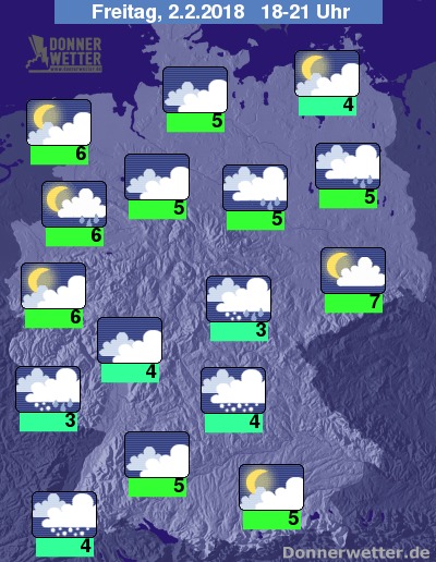 Heute Abend ziehen größtenteils dichte Wolken über uns hinweg, dabei sind aber auch Auflockerungen möglich. Es fällt hier und da Schnee, Schneeregen oder Regen, dabei kann es stellenweise glatt auf den Straßen werden! Die Temperatur liegt bei 3 bis 7 Grad.