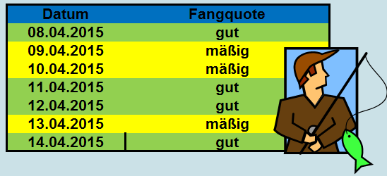 Das Wochenende wird durch Tiefdruckaktivität zeitweise regnerisch und wechselhaft. Bei kühlen Temperaturen und Wind fallen immer wieder Schauer. Die Angelbedingungen sind daher als mäßig bis gut einzustufen.