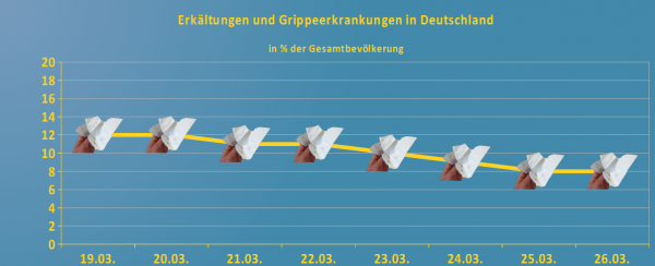 Bis Ende der Woche werden noch etwa 8 % der Menschen in Deutschland von Husten, Schnupfen & Co. geplagt.