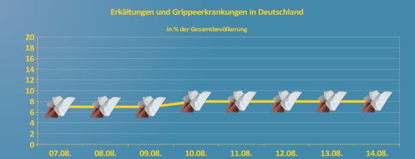 Die Erkältungs- und Grippezahlen bleiben vom herbstlichen Wetter der letzten und teilweise auch noch nächsten Tage nicht unbeeindruckt und erreichen jahreszeitlich gesehen recht hohe Werte.