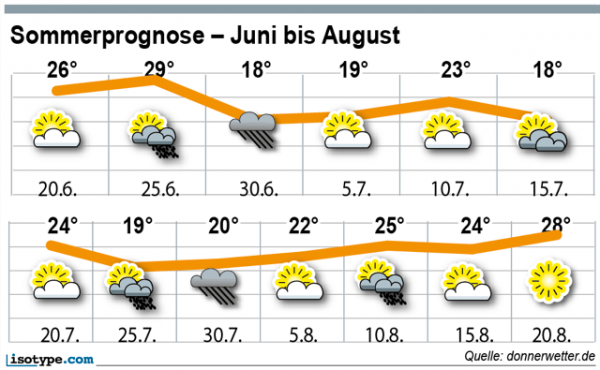 Vor allem im letzten Junidrittel, aber auch über weite Teile des August steigt das Quecksilber zwar zum Teil auf hochsommerliches Niveau, dafür zeigt sich das Wetter dann aber auch häufig wechselhaft.