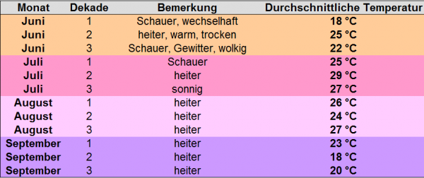 Nach anfänglichen Startschwierigkeiten entwickelt sich der Juli dann zu einem recht ansehnlichen Sommermonat. In der zweiten und dritten Dekade kommt der Monat, pünktlich zum Beginn der Sommerferien in den meisten Bundesländern, mit Freibadwetter daher.