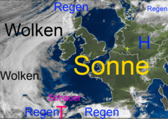 ![]() | | Satellitenbild 15.04.2020 Große Sonneninsel umgeben von Wolken |