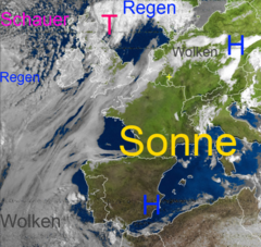 Sonne im Osten und Süden - Regenwolken über Teilen Skandinaviens