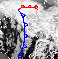 Über dem Mittelmeer hat sich ein kleines Tief gebildet. Es zieht heute mit seinen Fronten über Griechenland hinweg in Richtung Schwarzes Meer und sorgt vor allem dort, sowie in den Balkanstaaten für Schauer und Gewitter.