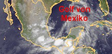 Auf dem Satellitenfoto von Mittelamerika ist besonders über dem südlichen Mexiko vielfach hochreichende Quellbewölkung zu erkennen, in diesen Regionen ist mit zum Teil unwetterartigen Schauern und Gewittern zu rechnen. Auch im Golf von Mexiko ist das Wetter häufig unbeständig mit Regen und teils auch mit Wind.