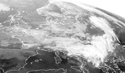 Auf dem Satellitenbild von Montag früh erstreckt sich die Kaltfront der Tiefdruckzone 'Ole' von Skandinavien über Weißrussland und dem Balkan bis an die Adria. Hinter ihr bilden sich in feucht-kühler Meeresluft Schauer, vereinzelt auch Gewitter die heute im Laufe des Tages über Nord- und Mitteleuropa hinwegziehen. Über der Iberischen Halbinsel sorgt Hochdruckeinfluss für überwiegend sonniges Wetter.