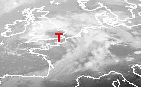 Tief 'Uriah' wandert im Laufe des Tages weiter nach Osten und liegt morgen über der Nordsee. Mit ihm ziehen seine Fronten auch über Deutschland hinweg und bringen teils kräftige Niederschläge mit. Auf der Rückseite gelangt mit einer nordwestlichen Strömung kalte Luft und teils stürmischer Wind nach Mitteleuropa. (Bildquelle: NERC Satellite Receiving Station, Dundee University, Scotland, http://www.sat.dundee.ac.uk/)