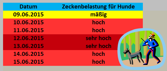 Am 07.06.2015 hatten wir den "Tag des Hundes". Grund genug, ihren Liebling auch in den kommenden Tagen gründlich nach dem Wald- und Außenspaziergang auf Zecken abzusuchen.