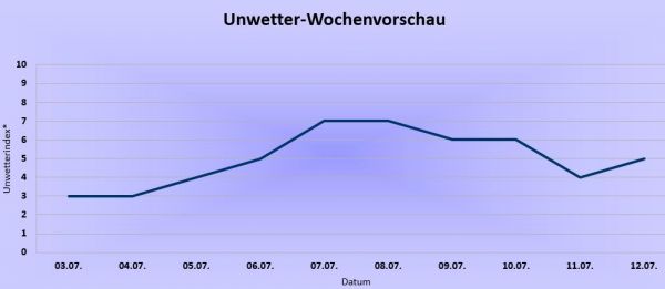Für die aktuelle Wetterwoche deutet sich ein ansteigendes Gewitterrisiko an. Zu Wochenbeginn sind lokale Gewitter im Alpenvorland und an den Küsten zu erwarten. Etwa zur Wochenmitte können wir jedoch auch vermehrt mit Gewittern über der Südhälfte Deutschlands und im Westen rechnen. Bei noch weiter zunehmendem Unwetterpotenzial sind dann Freitag und Samstag aller Voraussicht nach im gesamten Bundesgebiet teils starke Gewitter zu erwarten. Am Sonntag entspannt sich die Unwettersituation nur geringfügig.