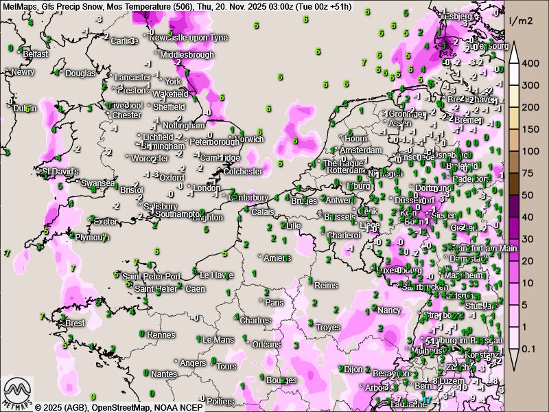 Schneeschauer werden bei uns dann ab 200 m Höhe für fünf bis zehn Zentimeter Neuschnee sorgen. Auch in Deutschland ist dann mit erheblichen Einschränkungen im Verkehr zu rechnen, zumindest auf den Autobahnen durch die Mittelgebirge.