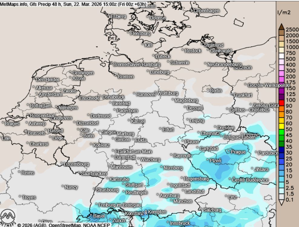 Nach aktuellen Modellberechnungen werden in den betroffenen Regionen bis Sonntag aber nur geringe bis mäßige Niederschlagsmengen erwartet.