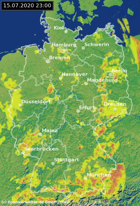 Radarbild von Mittwoch, 15.07.2020 um 23.00 Uhr