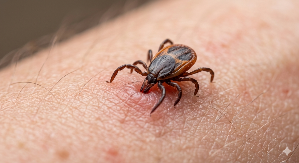 Zecken stechen selten sofort zu; sie wandern oft stundenlang am Körper entlang, um eine dünne, warme Hautstelle zu finden.