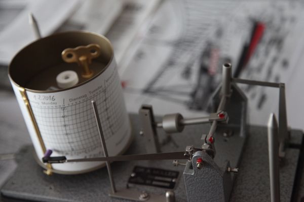 Der Benetzungsschreiber, hier die Bauart nach Woelfle, liefert vor allem der Agrarmeteorologie wichtige Informationen