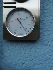 Gemessen wird die Luftfeuchtigkeit mit einem Hygrometer (Foto).